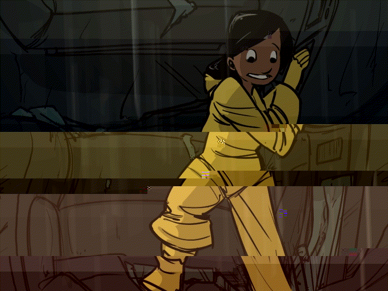 Bina starts trying to pry the glove compartment open. It is wedged shut with a piece of metal. A break shaft? Part of the door maybe? Bina knows nothing about cars.